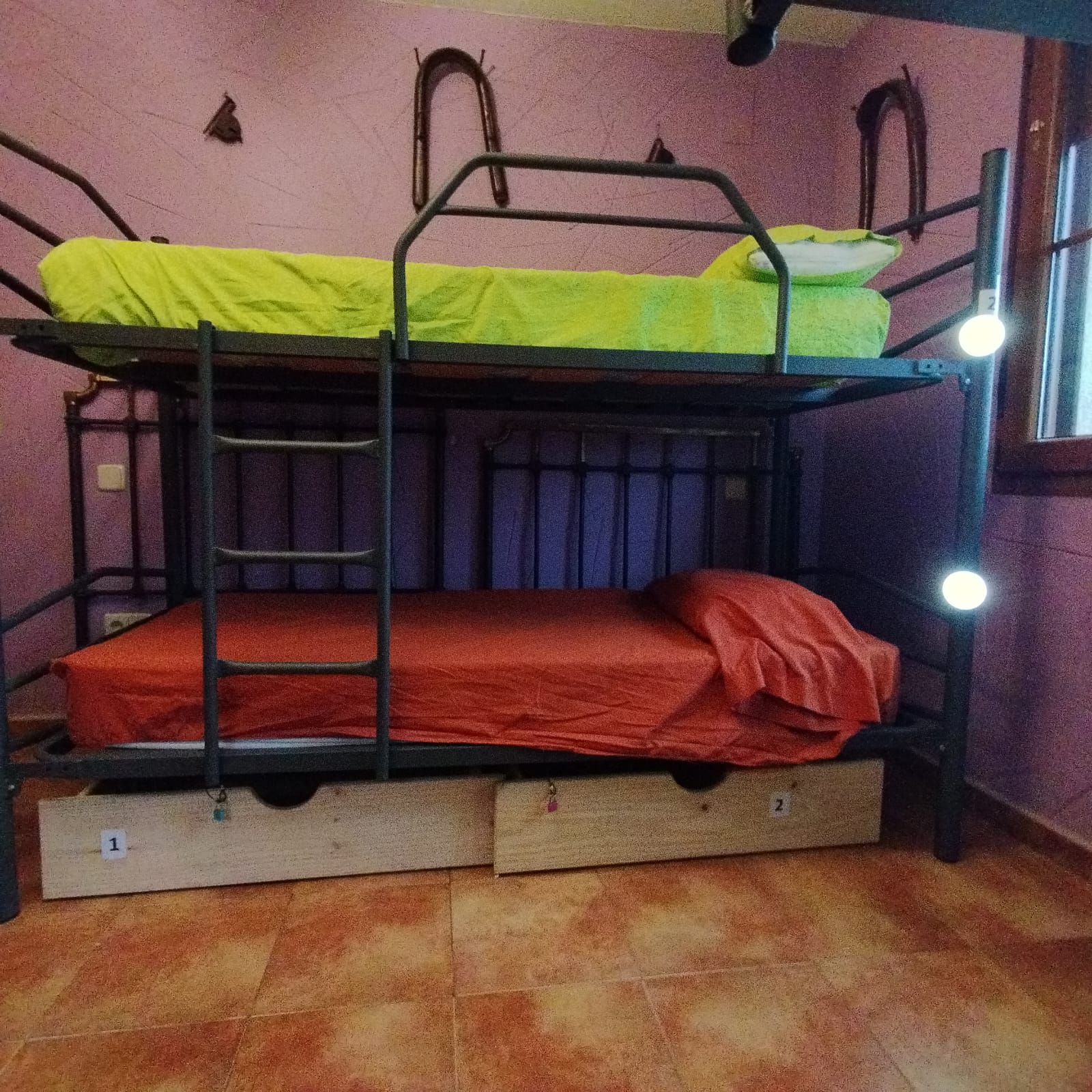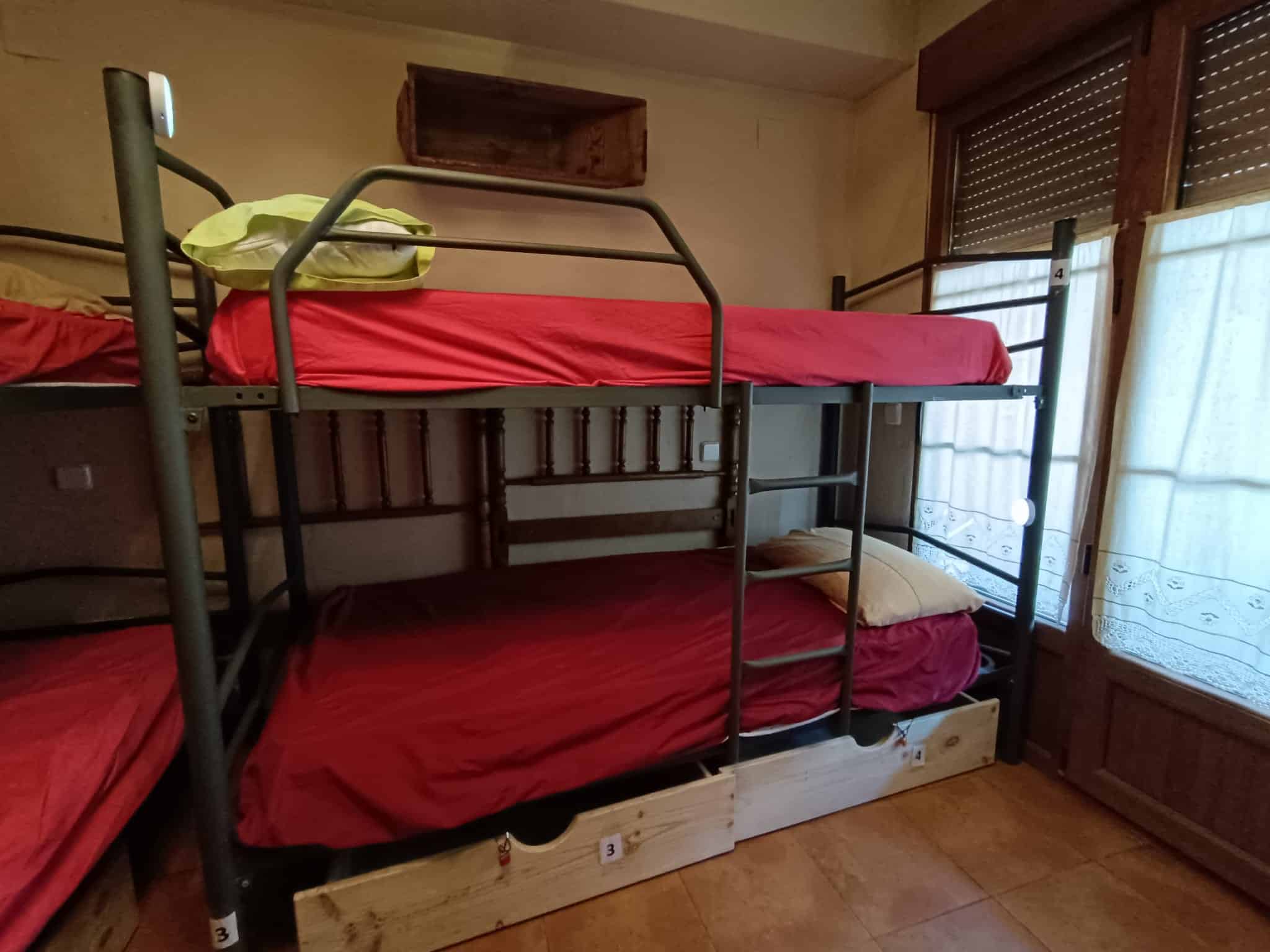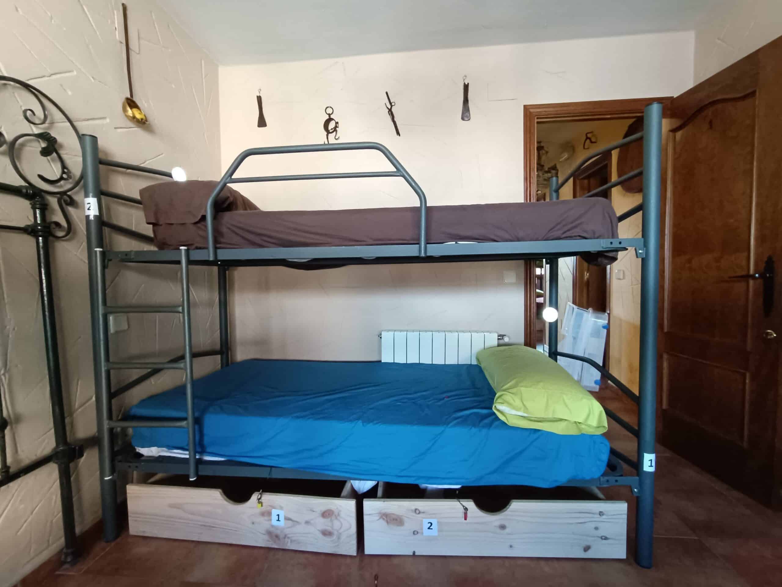 En 1ª Planta: hay 4 dormitorios con baño en su interior, 3 dormitorios de cuatro plazas y un dormitorio de 5 plazas, con un total de 17 plazas entre los 4 dormitorios.