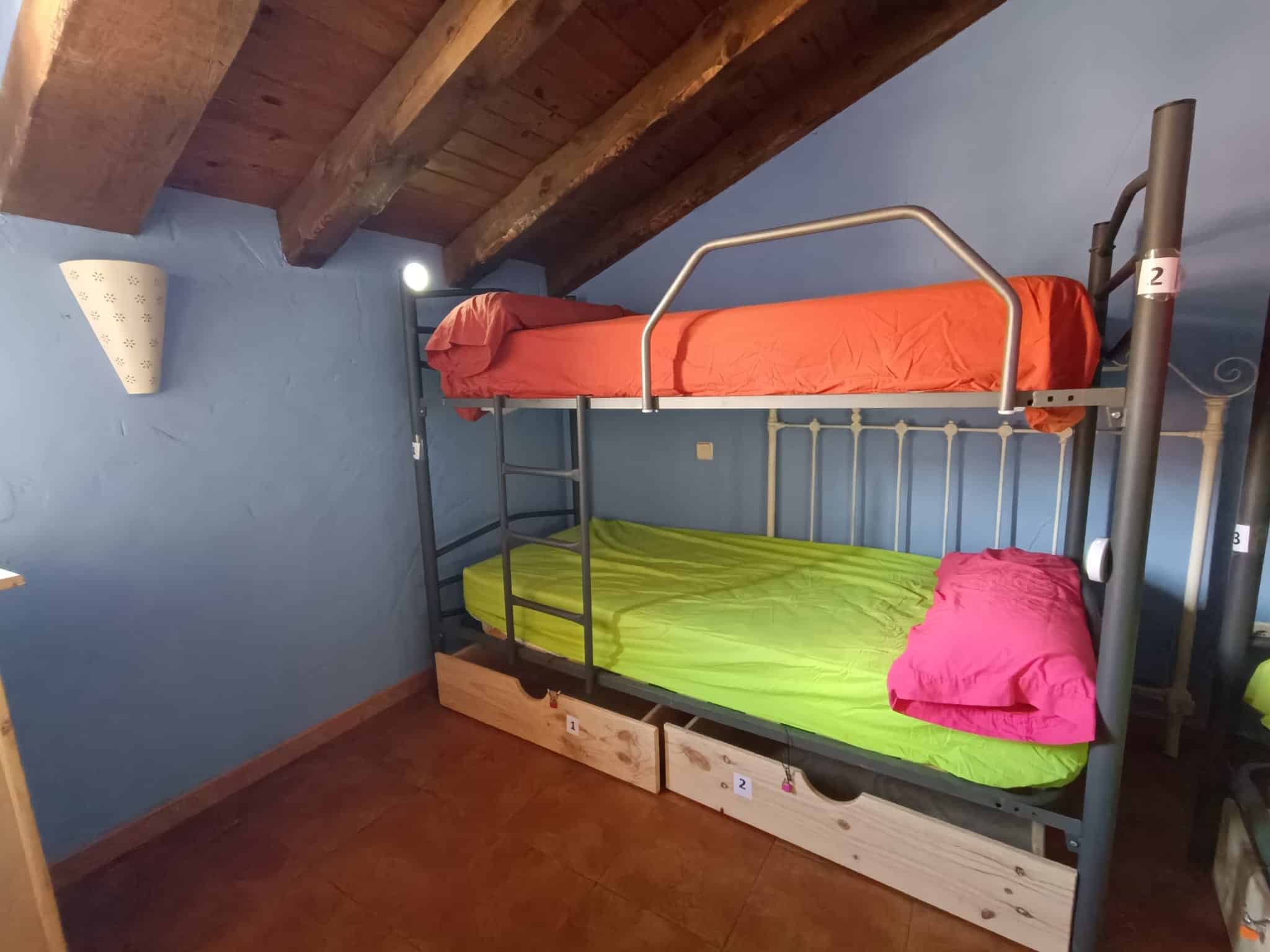 En la 2ª Planta: hay 2 dormitorios de cuatro plazas, 1 dormitorio de seis plazas y 1 dormitorio de 7 plazas. Con un total de 20 plazas entre los 4 dormitorios, todos los dormitorios tienen baño propio.